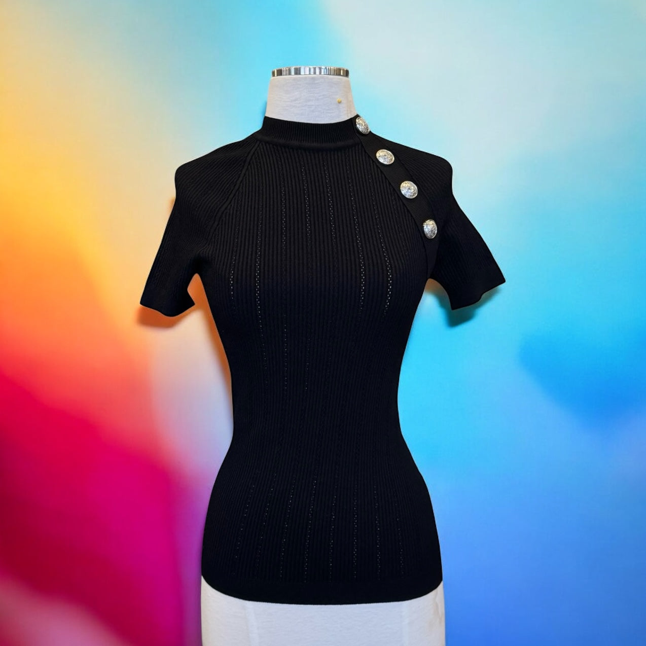 This is an authentic BALMAIN Knit Top in black. This top is perfect for any occasion