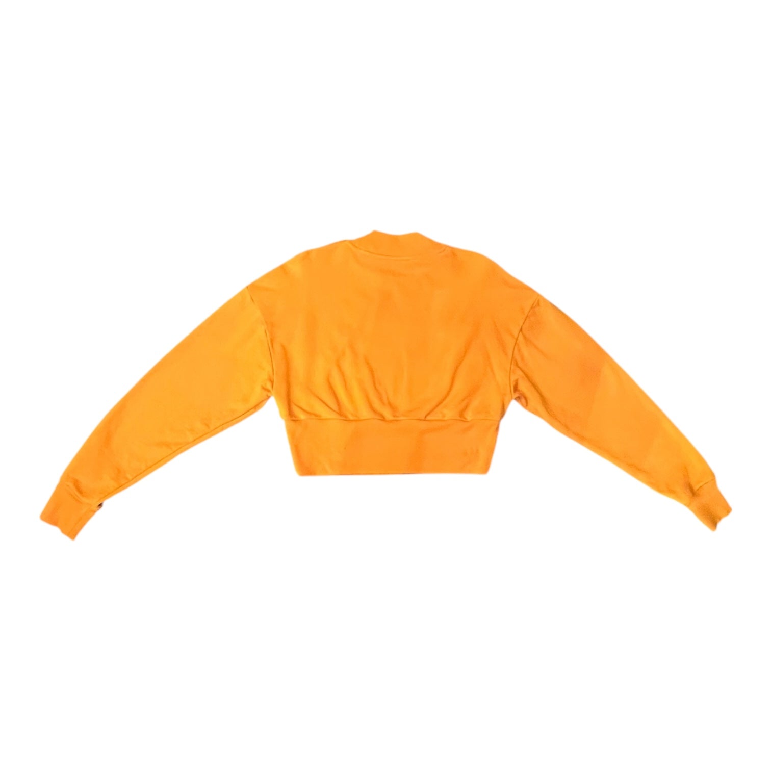 This authentic BALMAIN Paris Sweatshirt in Orange features a cropped fit and crewneck silhouette, fitted cuff sleeves, the Balmain Paris logo print on front, and gold toned hardware.
