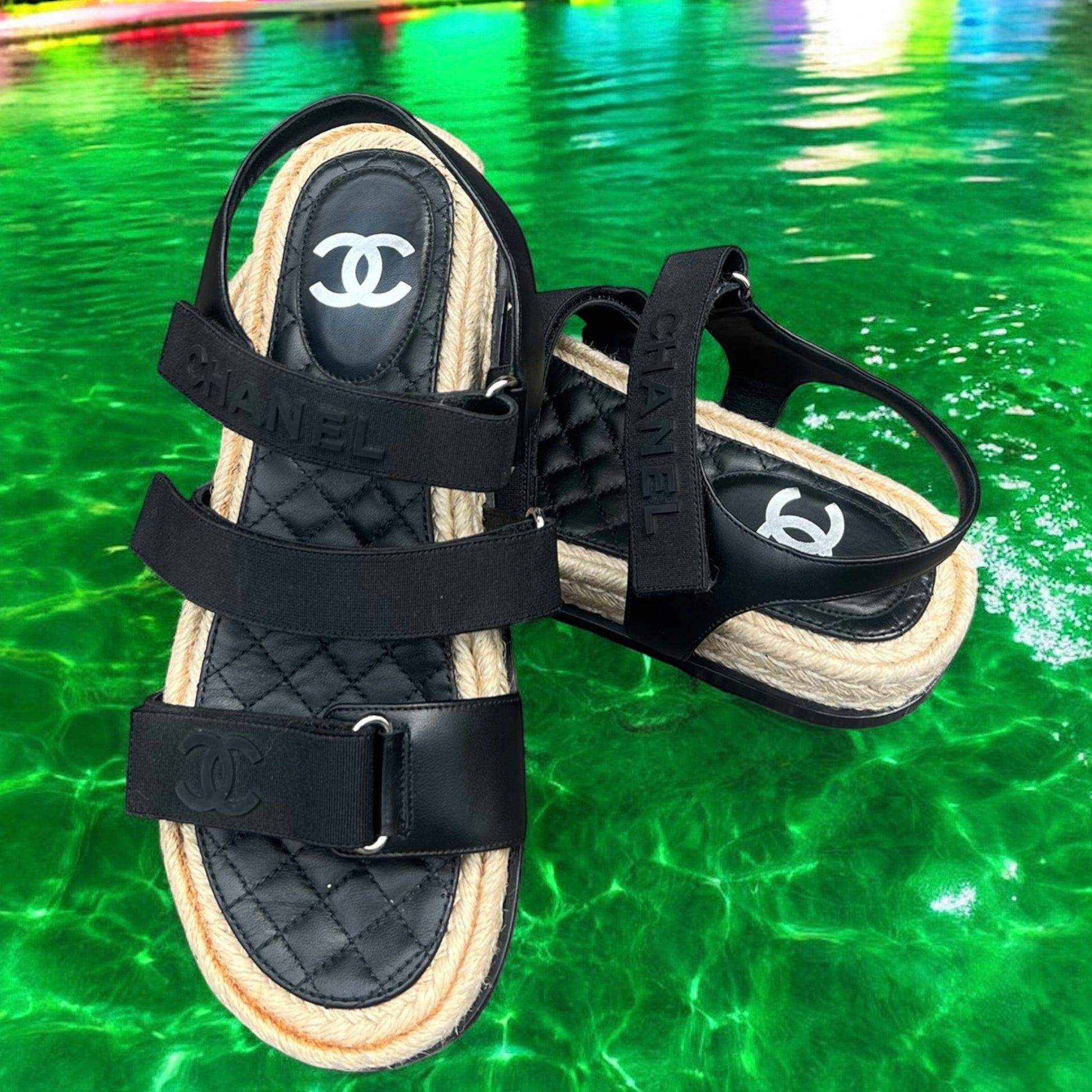 CHANEL Espadrille Dad Sandals in Black | 40