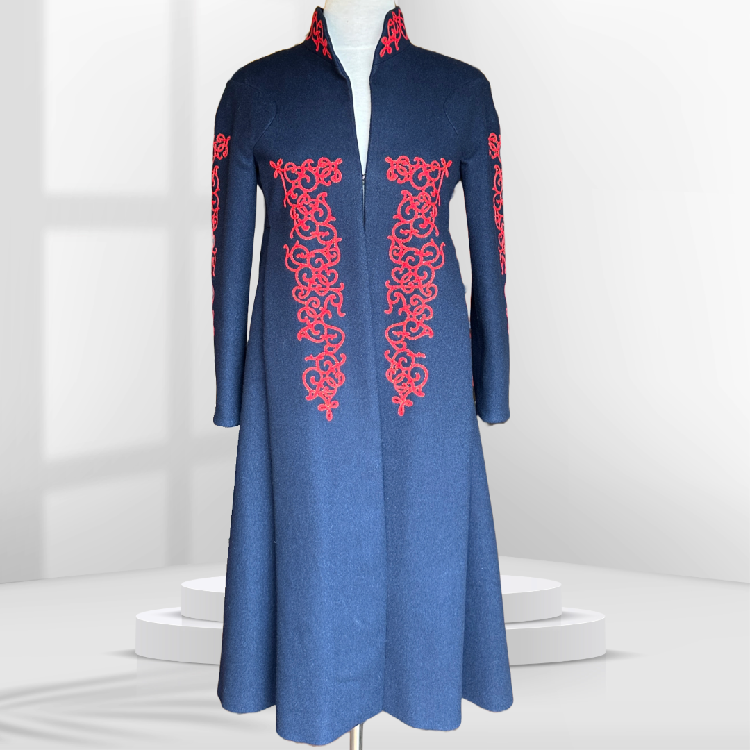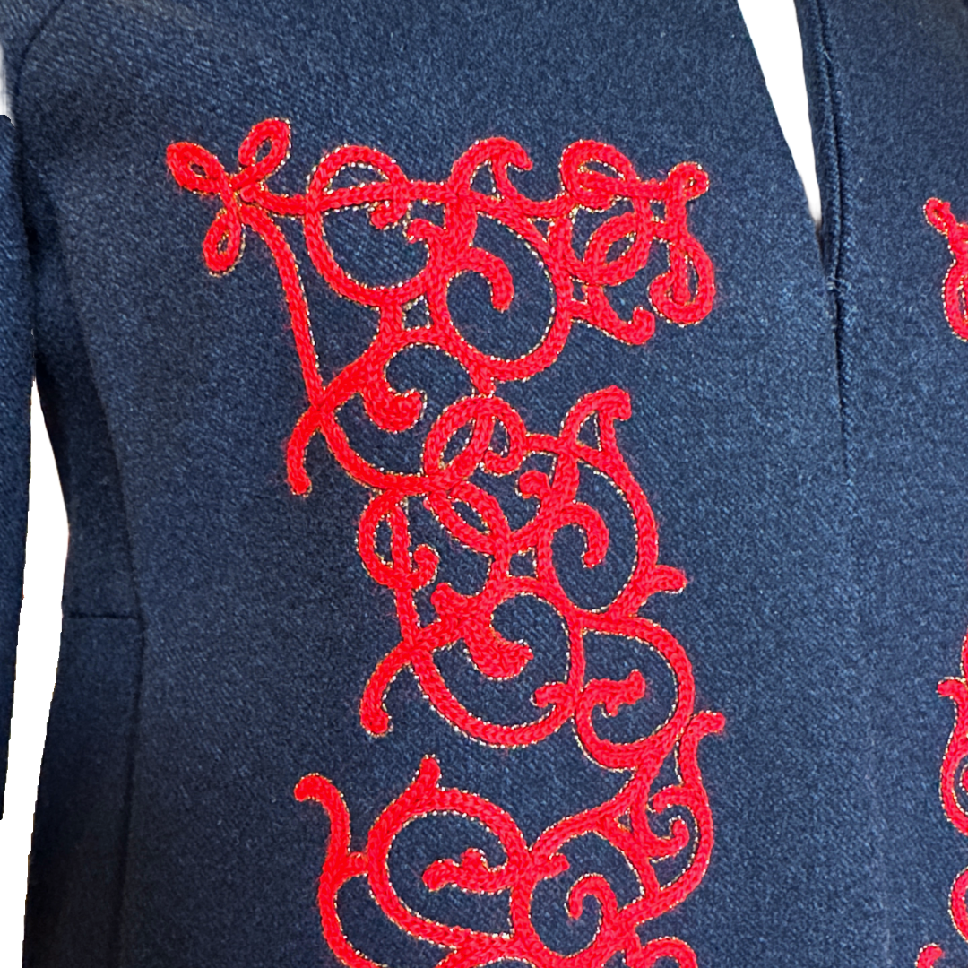 CHANEL F/W 2015 Navy Wool Red Embroidered Coat | FR 34 (US 2)