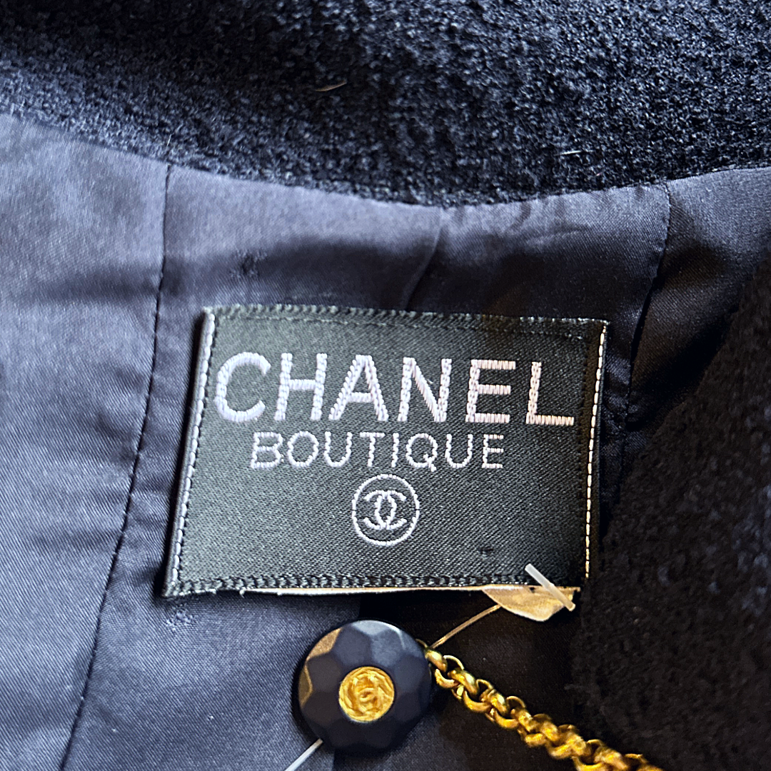 Buttons: Three working Chanel buttons on each sleeve, featuring a lion’s head with a "CC" logo in its mouth.