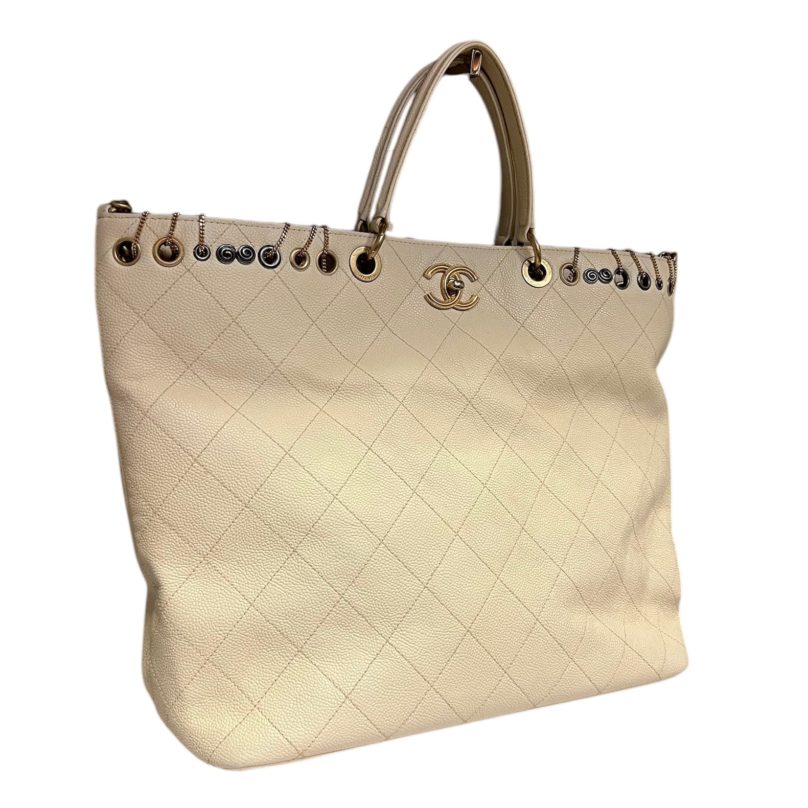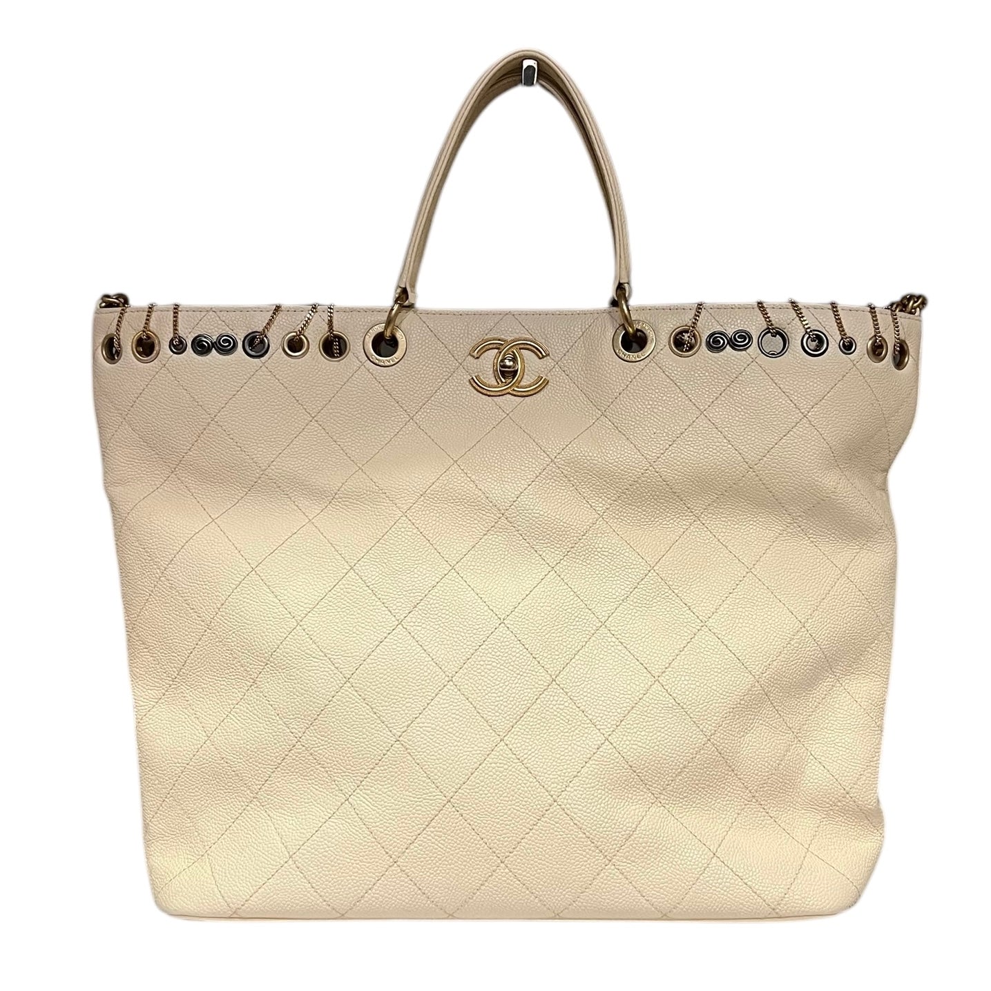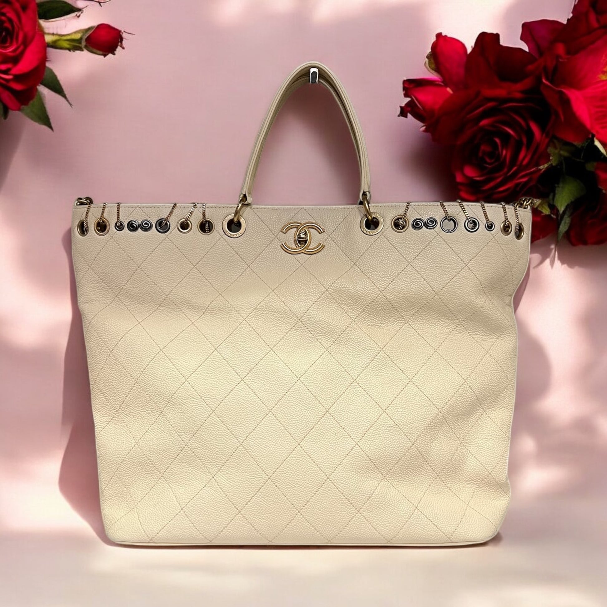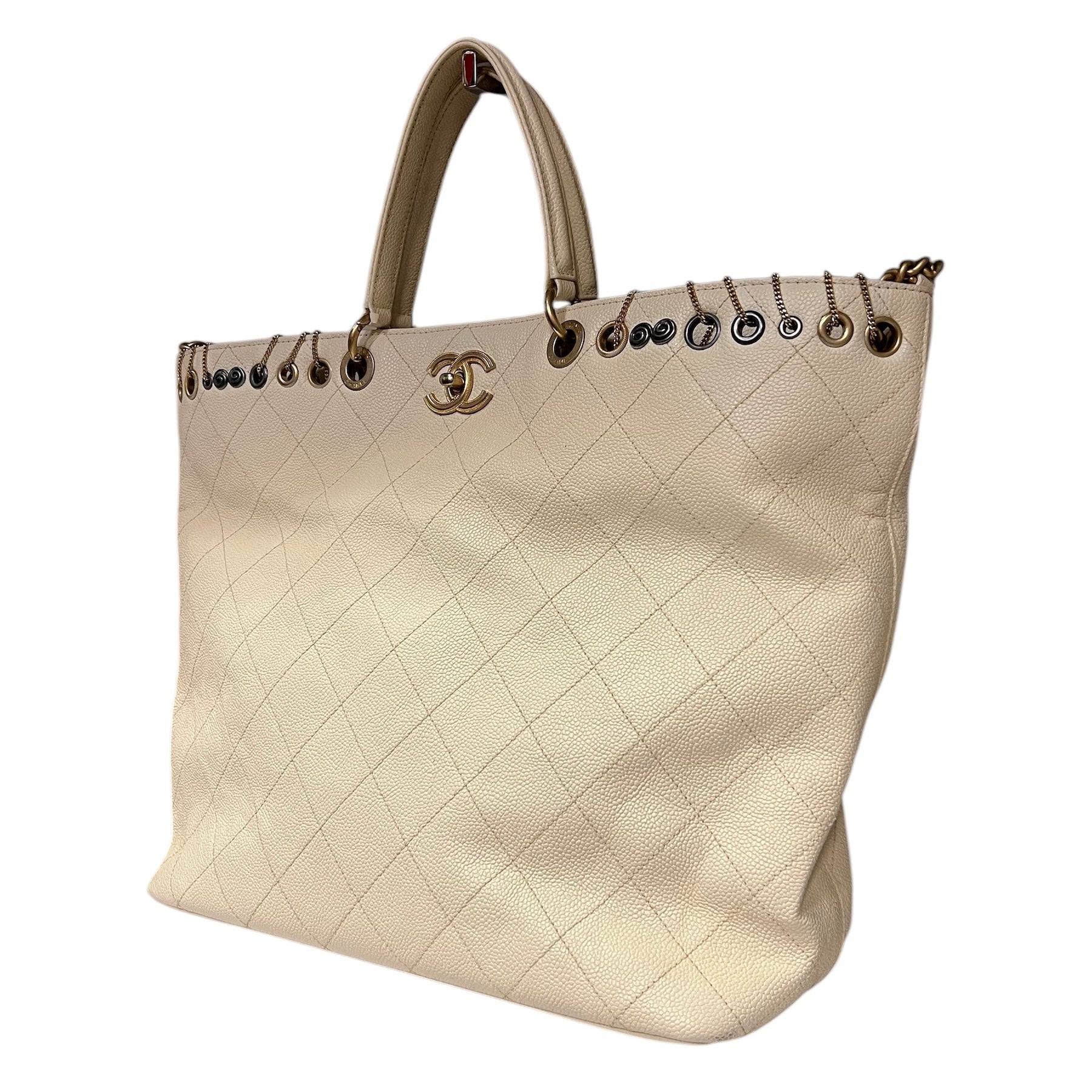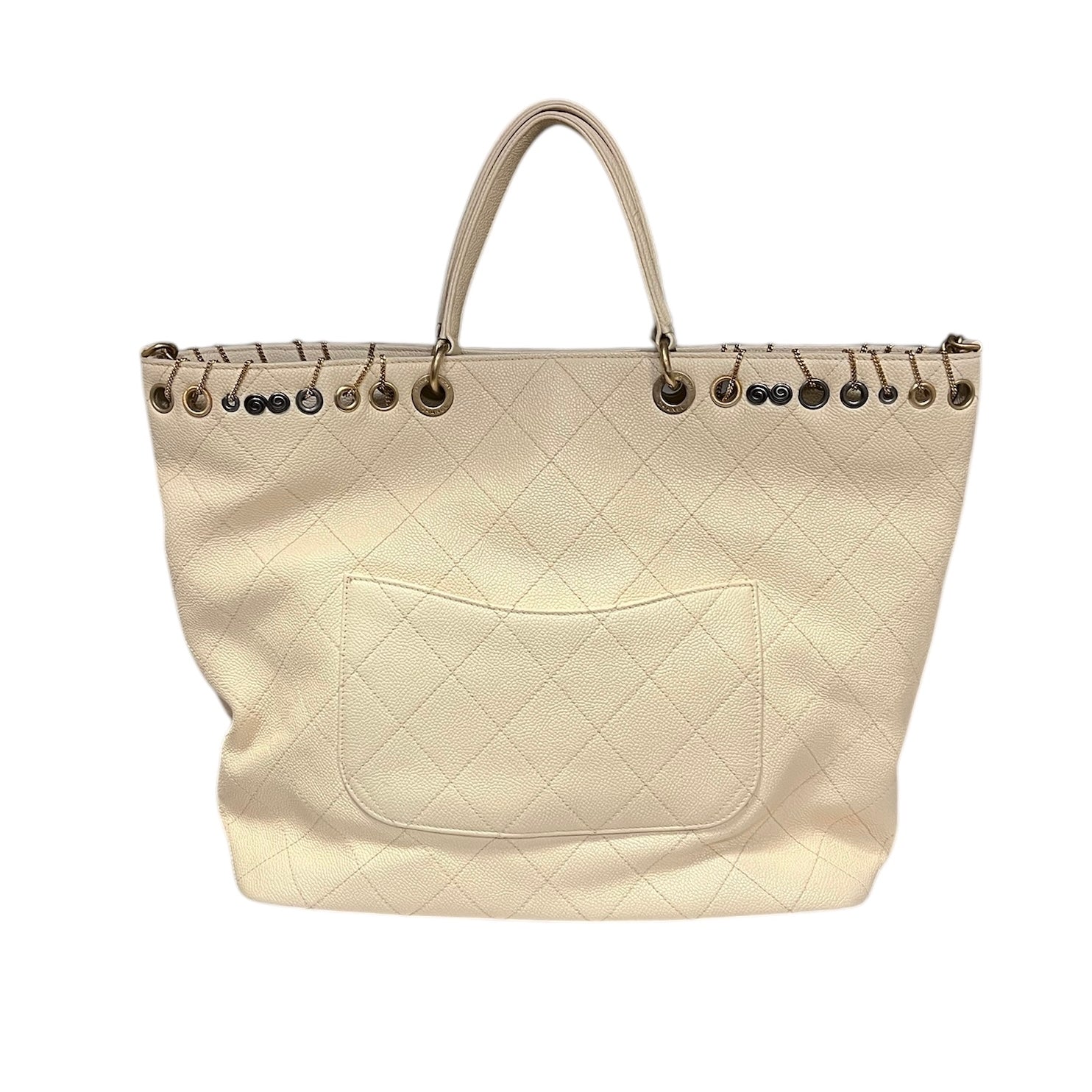 This is an authentic CHANEL Piercing Chic tote bag in the color Ivory.