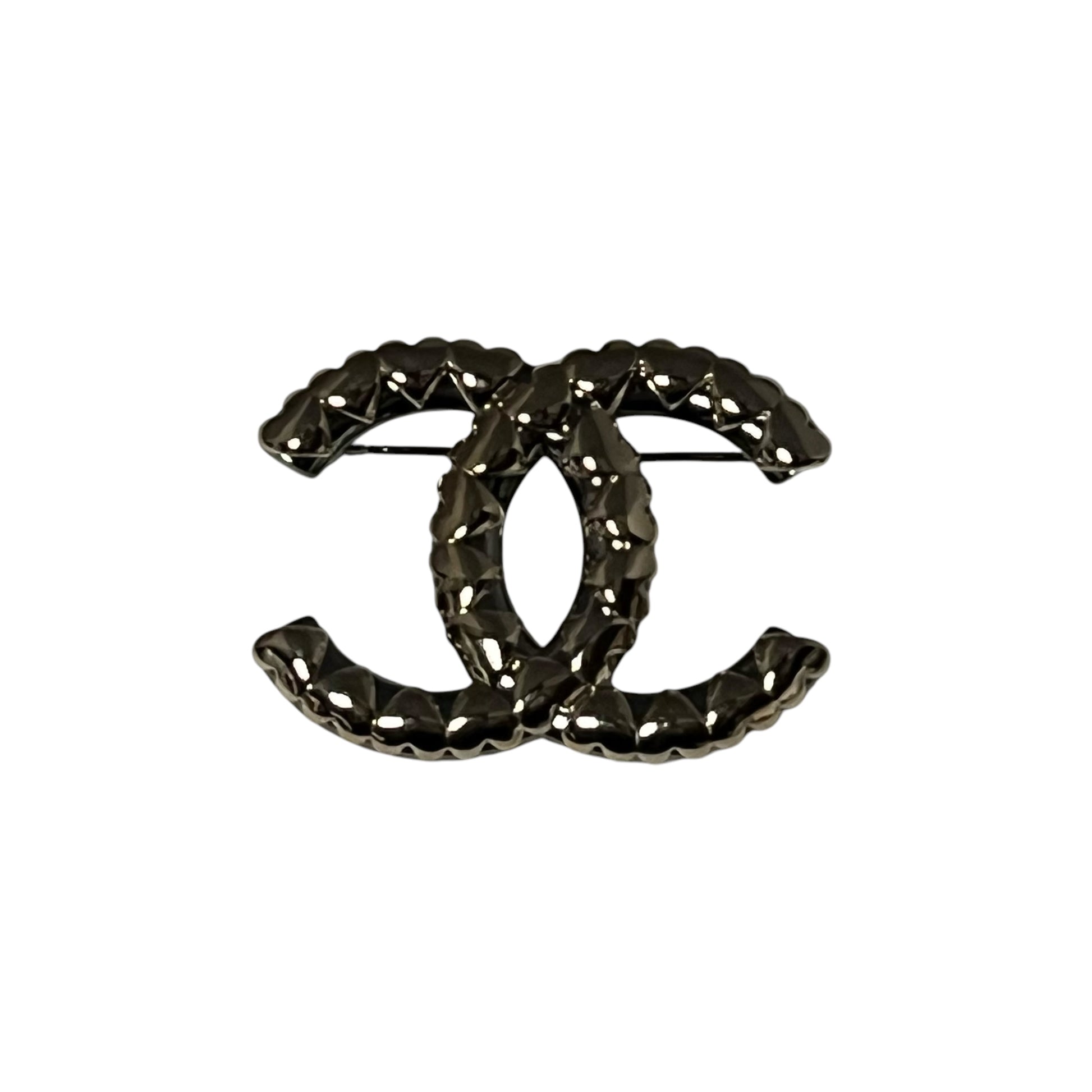 This is an authentic CHANEL Heart Quilted CC Brooch. This brooch is made up of several small hearts in silver tone; a perfect accessory for Valentine's Day!