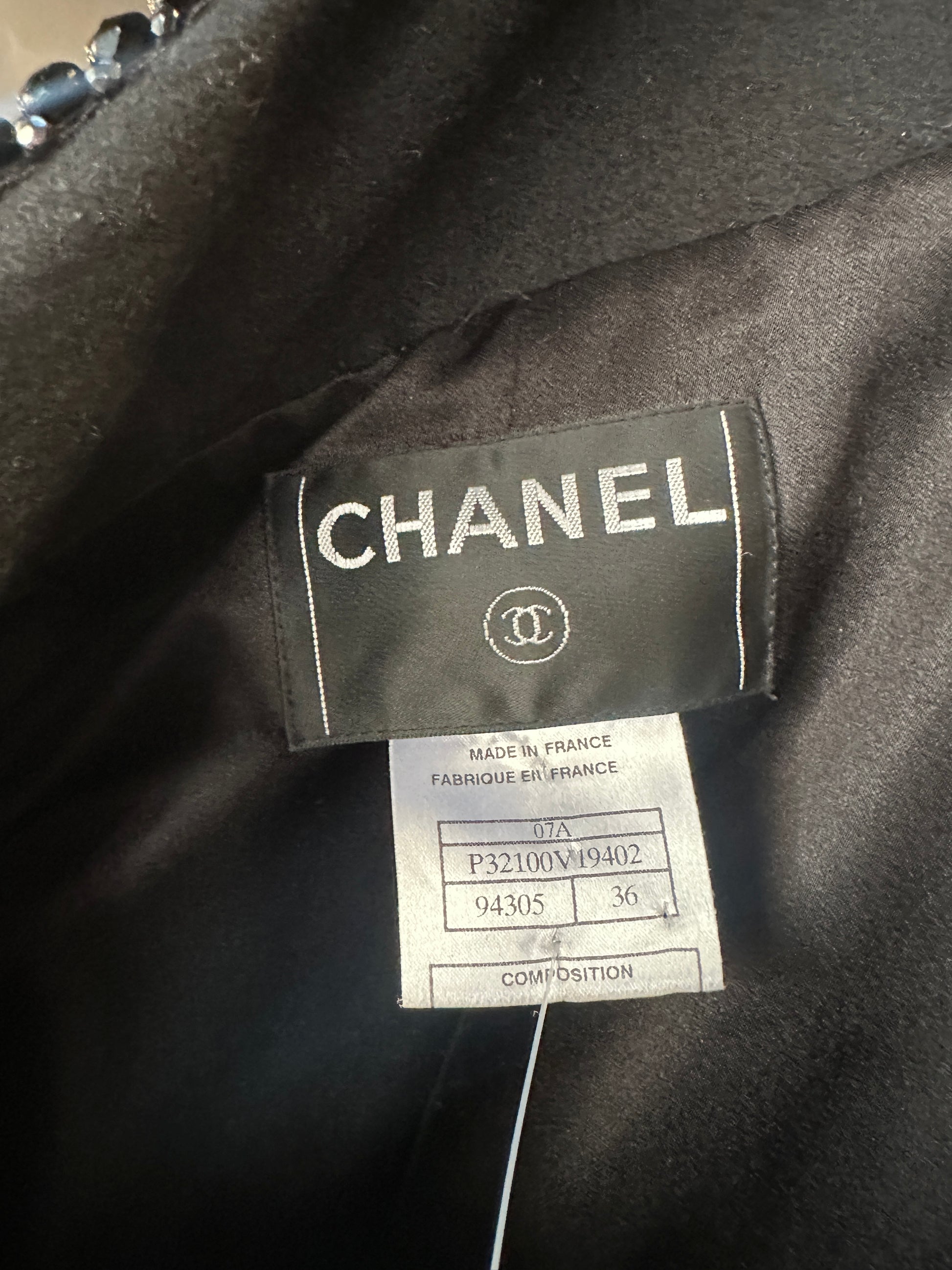 The design is completed with covered buttons adorned with silver thread and the CC logo, a nod to the brand’s iconic status. A rare and elegant piece from the 2007 Autumn Collection, this coat brings Chanel’s signature elegance and expert craftsmanship to any wardrobe.