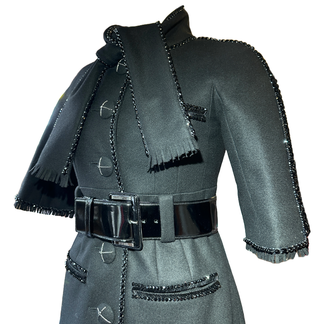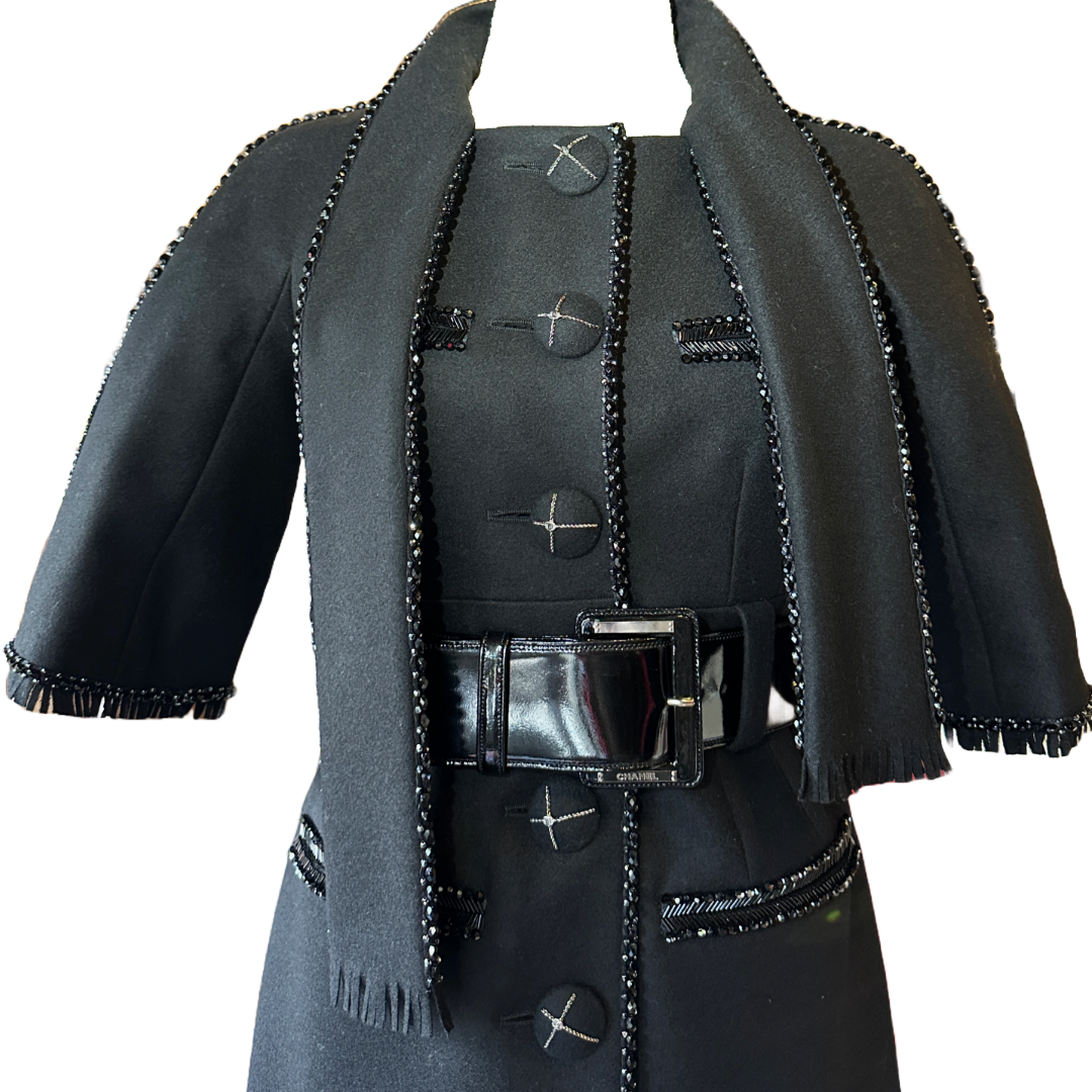 CHANEL Soft Black Hand-Beaded Coat | Size 36