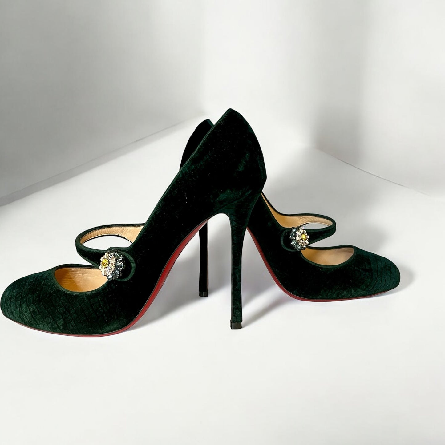 CHRISTIAN LOUBOUTIN Crystal Button Velvet Mary Jane Pumps | 40