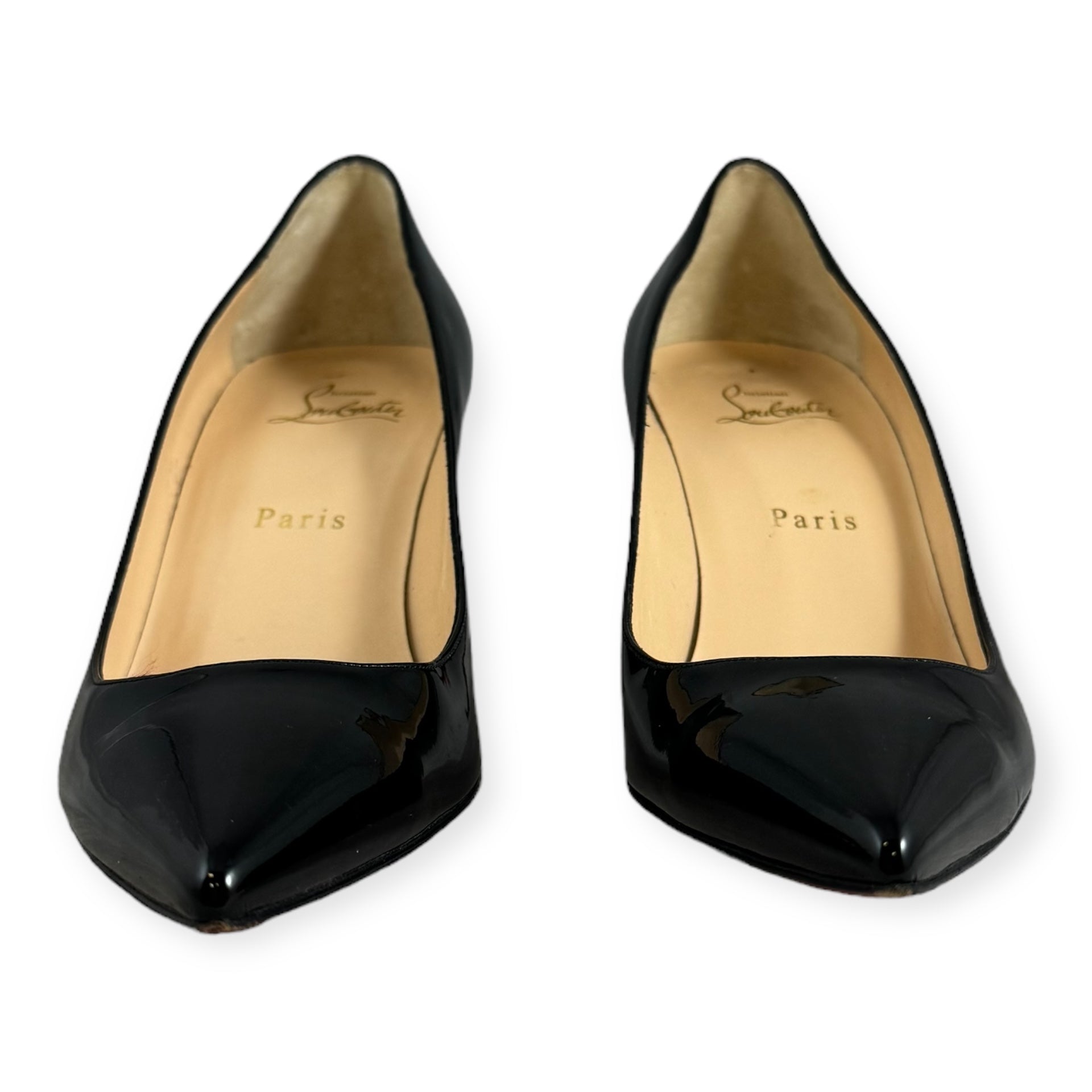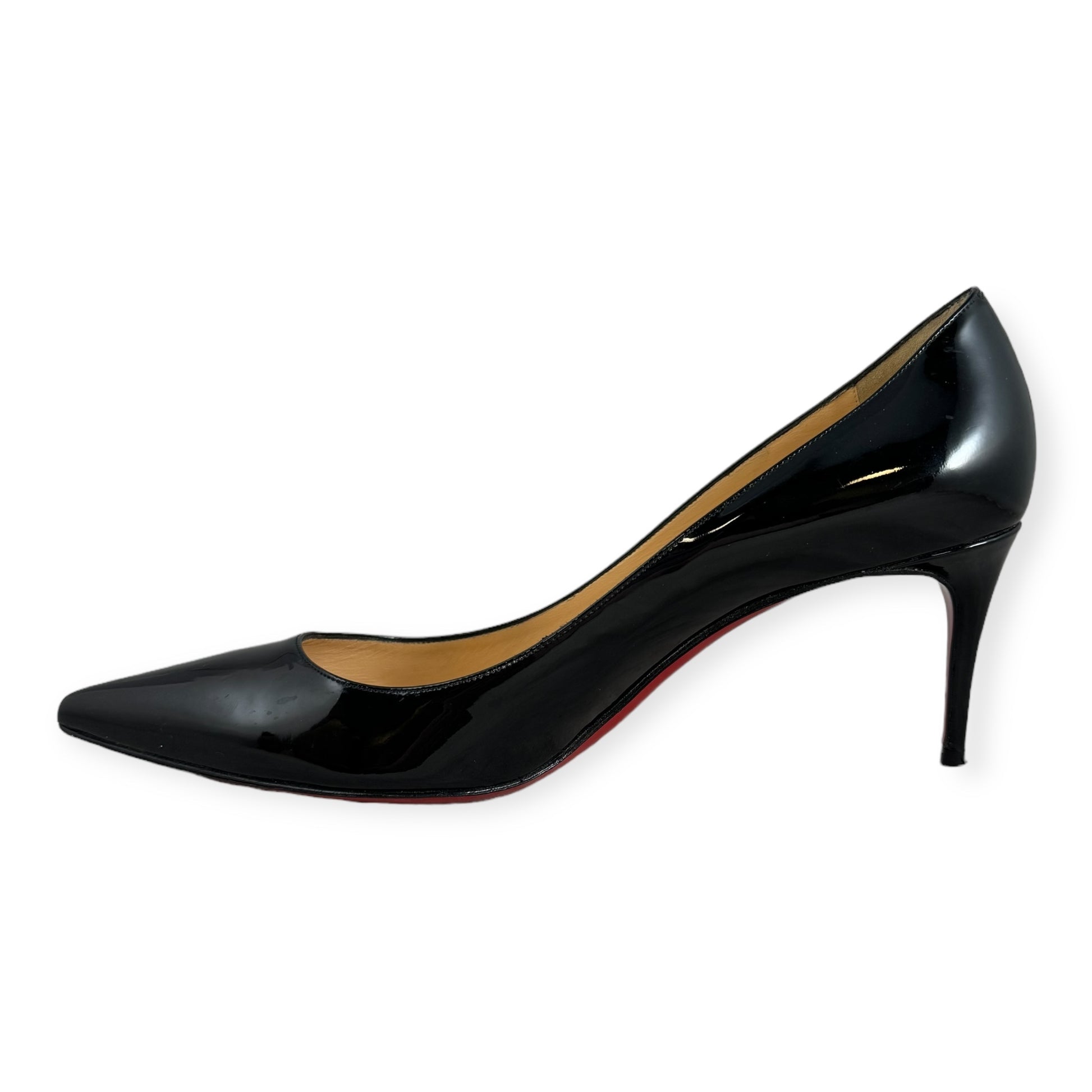 CHRISTIAN LOUBOUTIN Patent Midheel Pumps in Black | Size 38.5