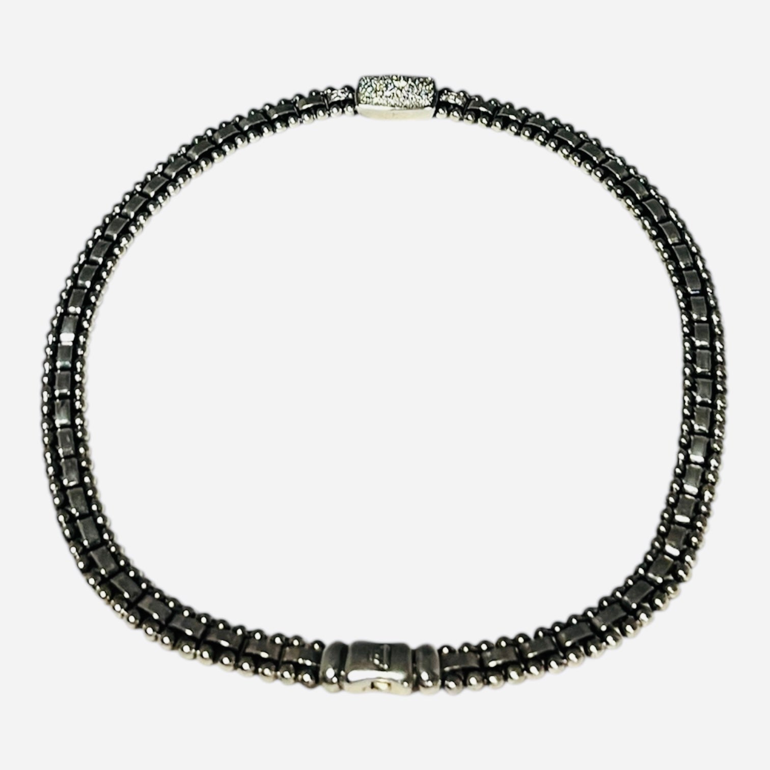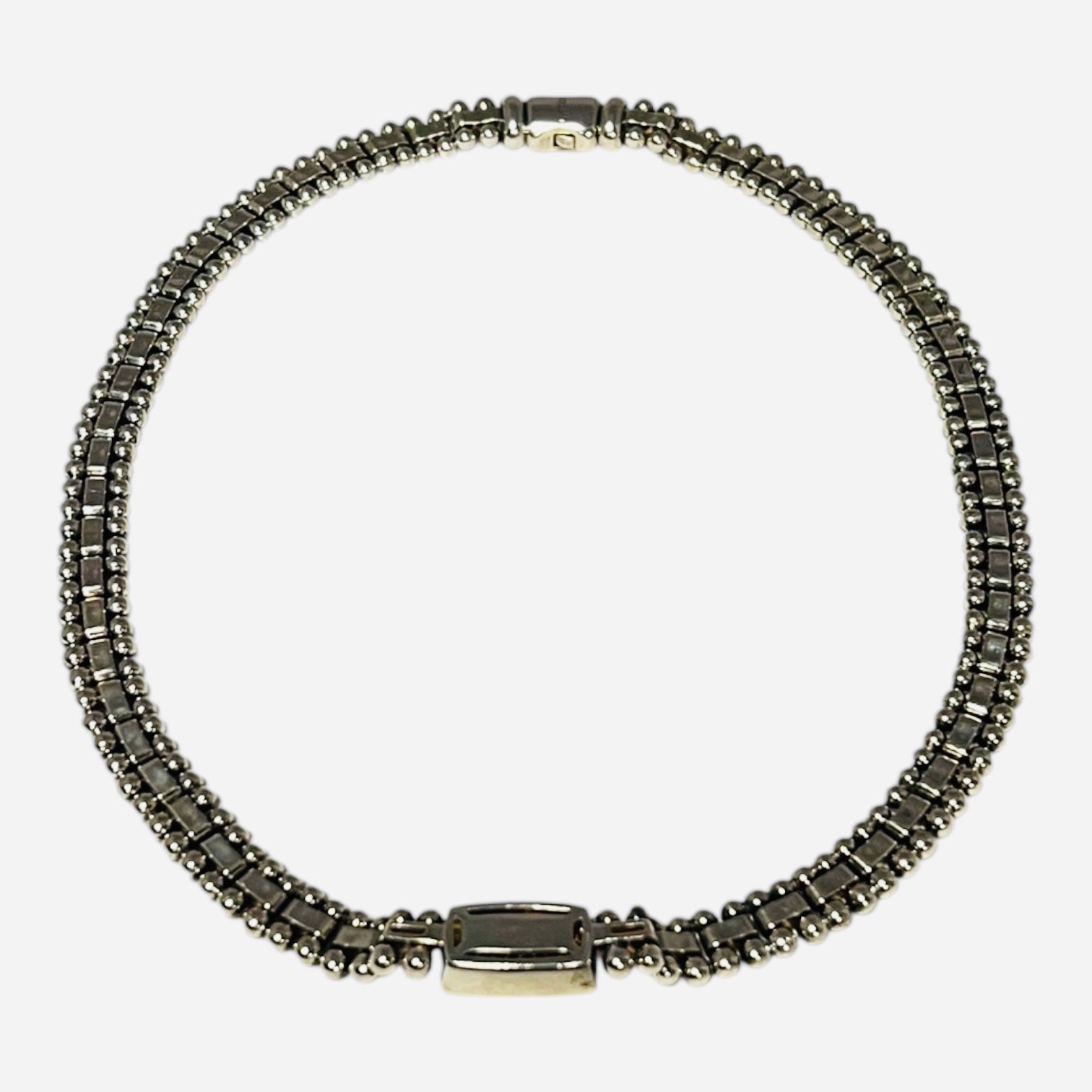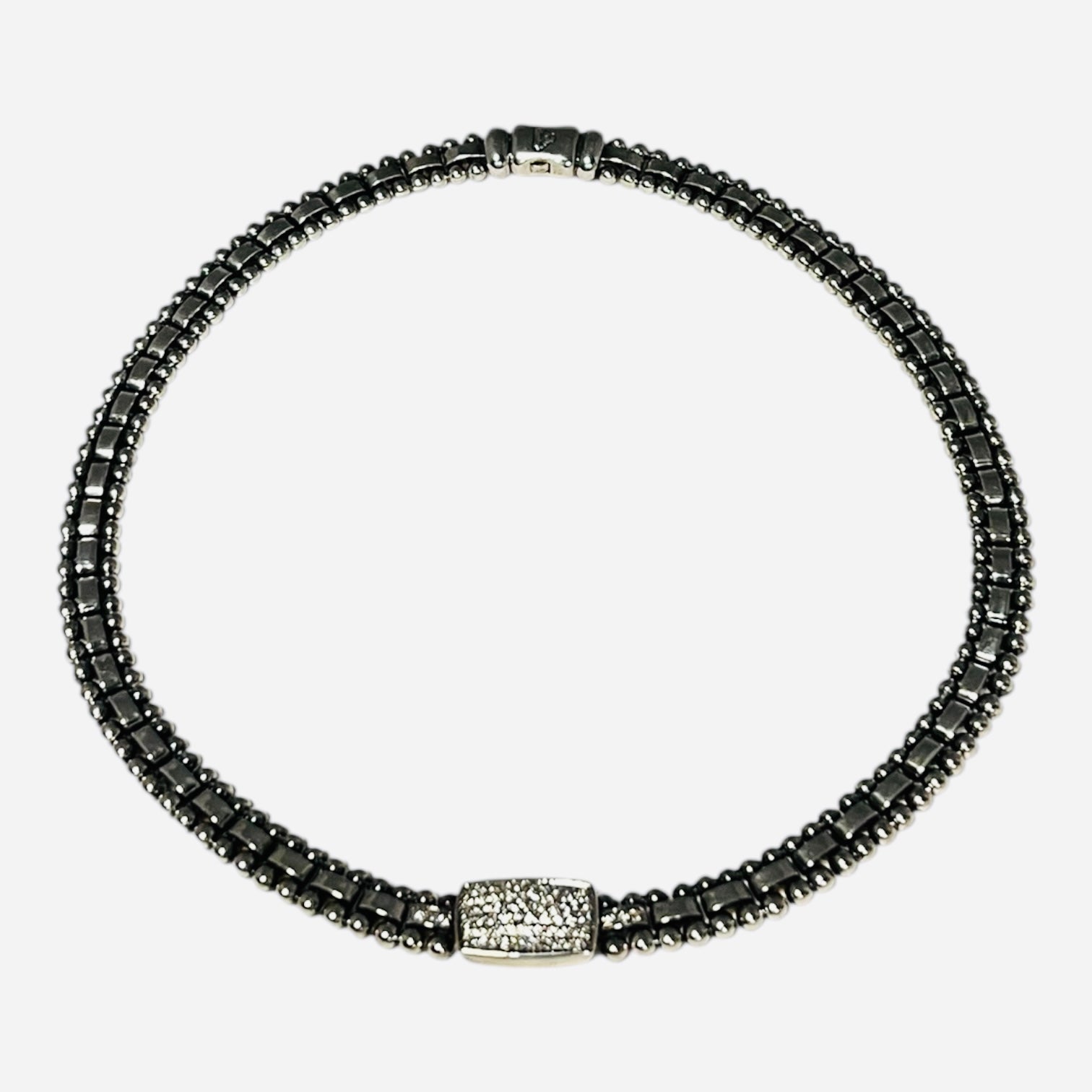 This is an authentic LAGOS Diamond Station Necklace in sterling silver features a pave diamond station set in sterling silver and a pushlock closure. Choker silhouette.