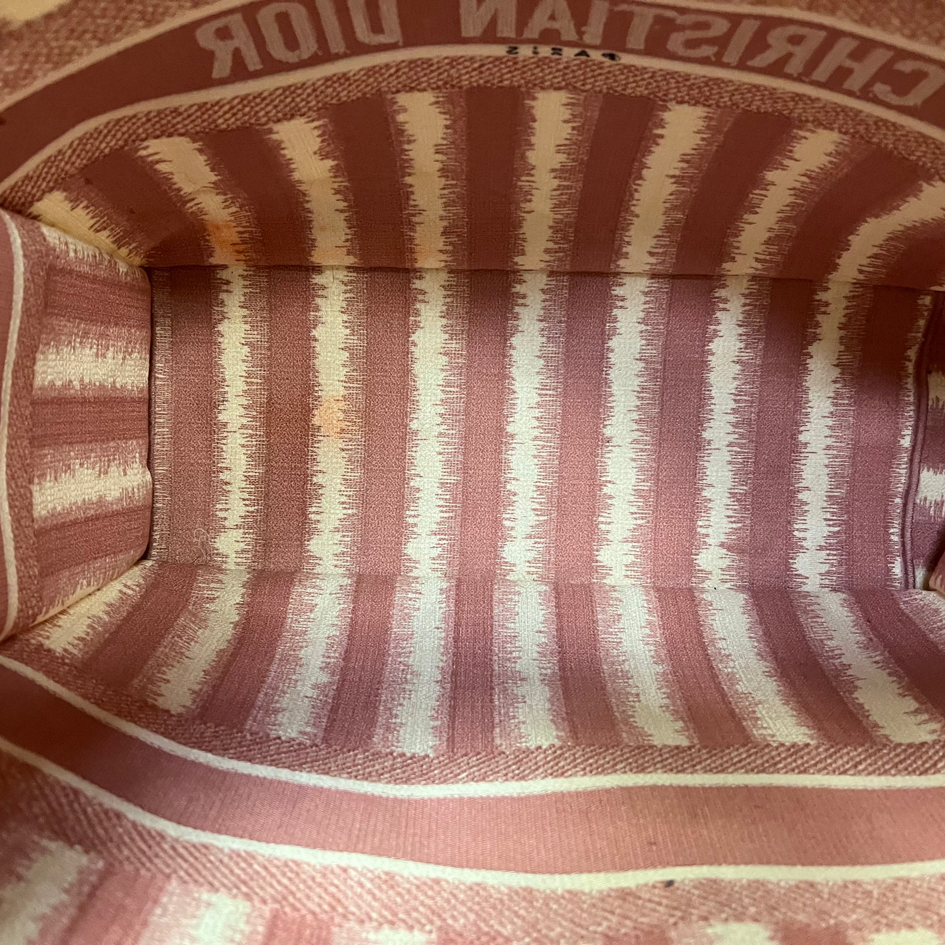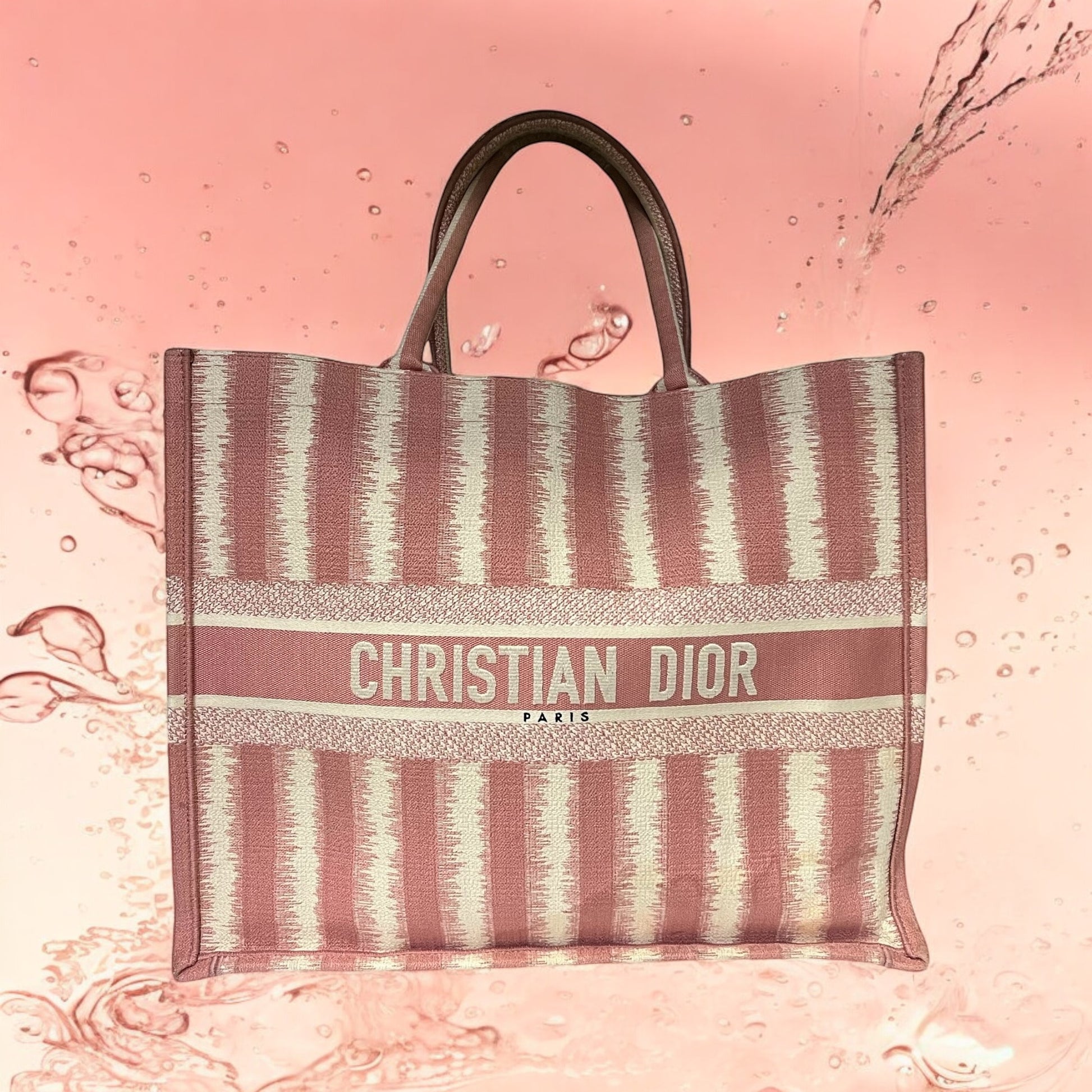 The DIOR Book Tote in Ecru and Pink Toile de Jouy Embroidery, introduced by Maria Grazia Chiuri, Creative Director of Christian Dior, has quickly become an iconic piece within the Dior collection. Designed to hold all your daily essentials, this medium-sized tote is fully embroidered with the elegant ecru and pink Toile de Jouy motif, showcasing Dior’s impeccable craftsmanship. The front is adorned with the Christian Dior Paris signature, making it an unmistakable representation of the House’s heritage.