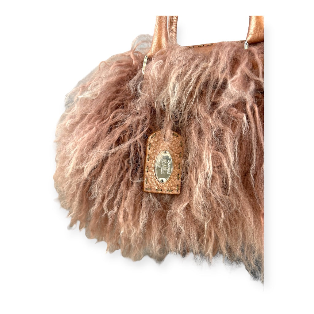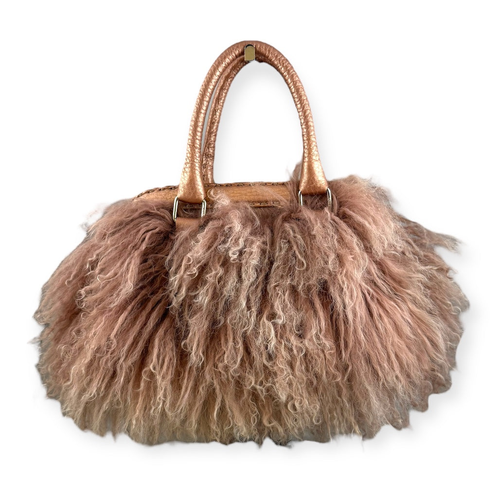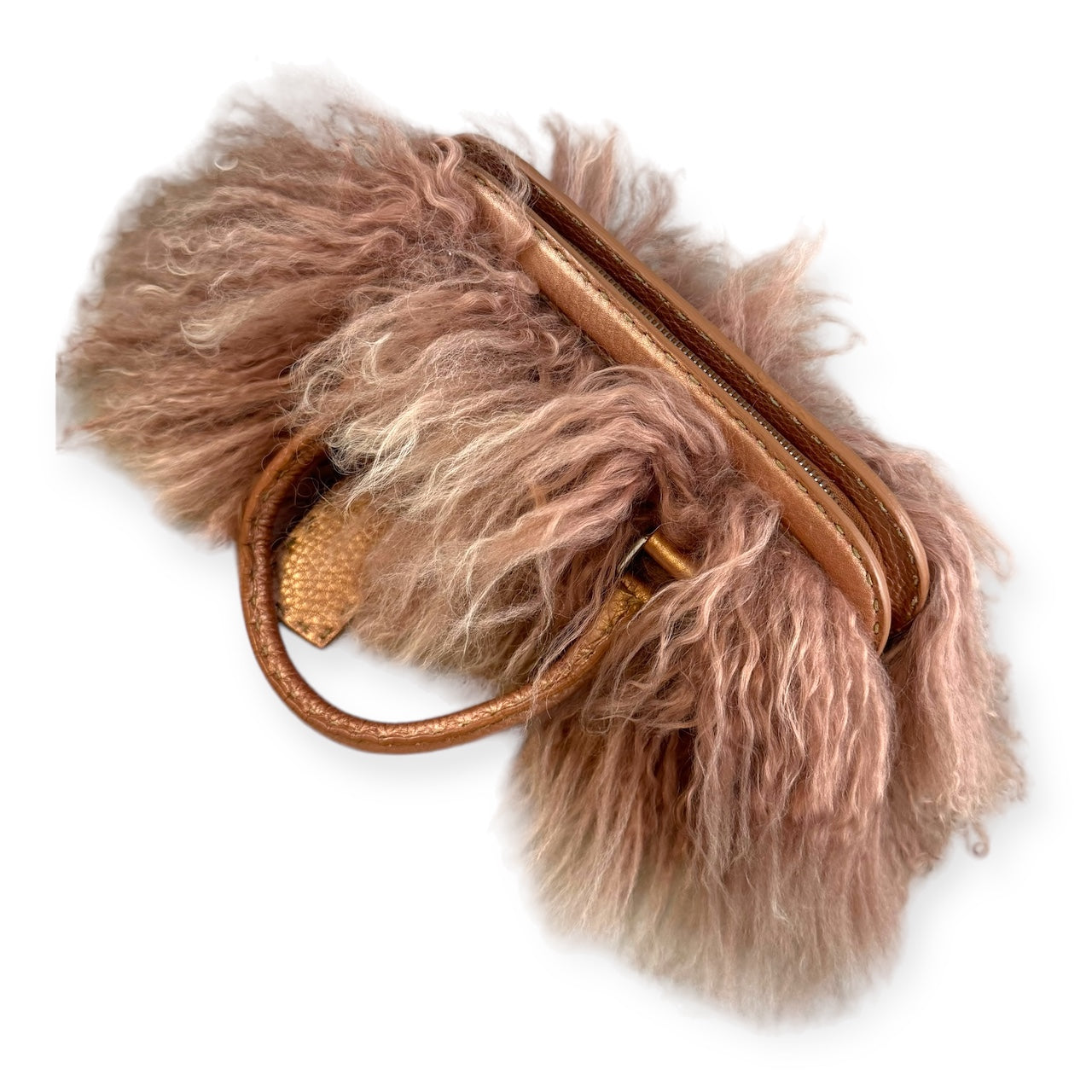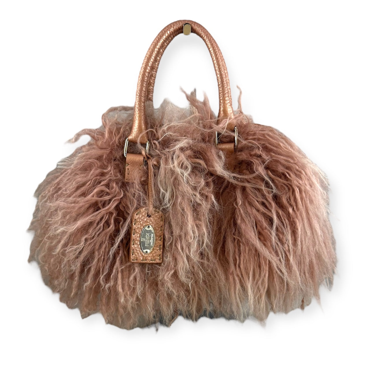 FENDI Mongolian Lamb Selleria Handbag in Pink