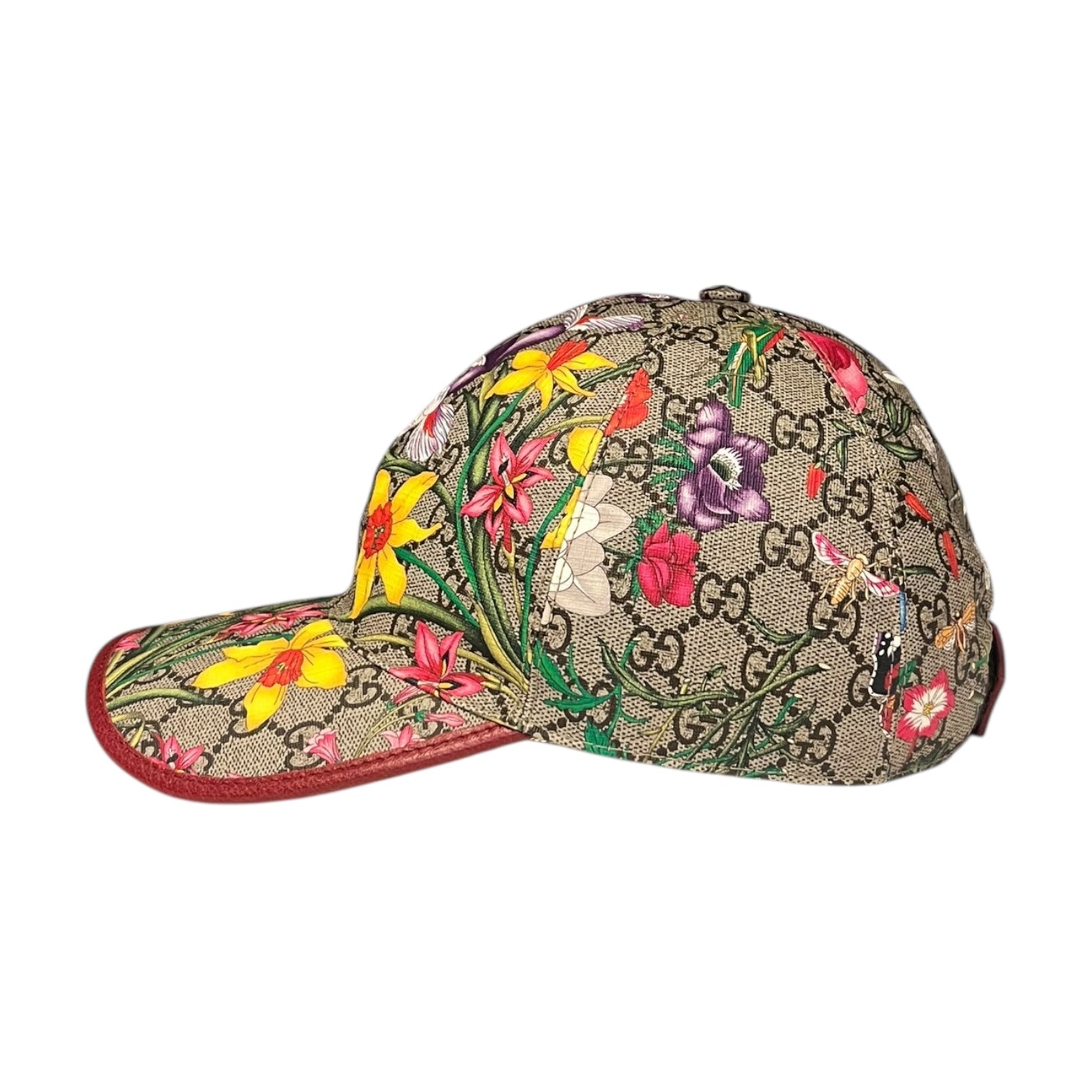 This is an authentic GUCCI Flora cap featuring an allover Flora pattern, an adjustable velcro strap in the back, and gold toned hardware.
