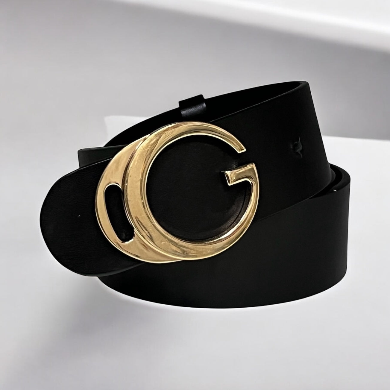This GUCCI G Buckle Belt in black leather with antiques brass hardware features a classic G buckle and can be worn as at the hip or waist.