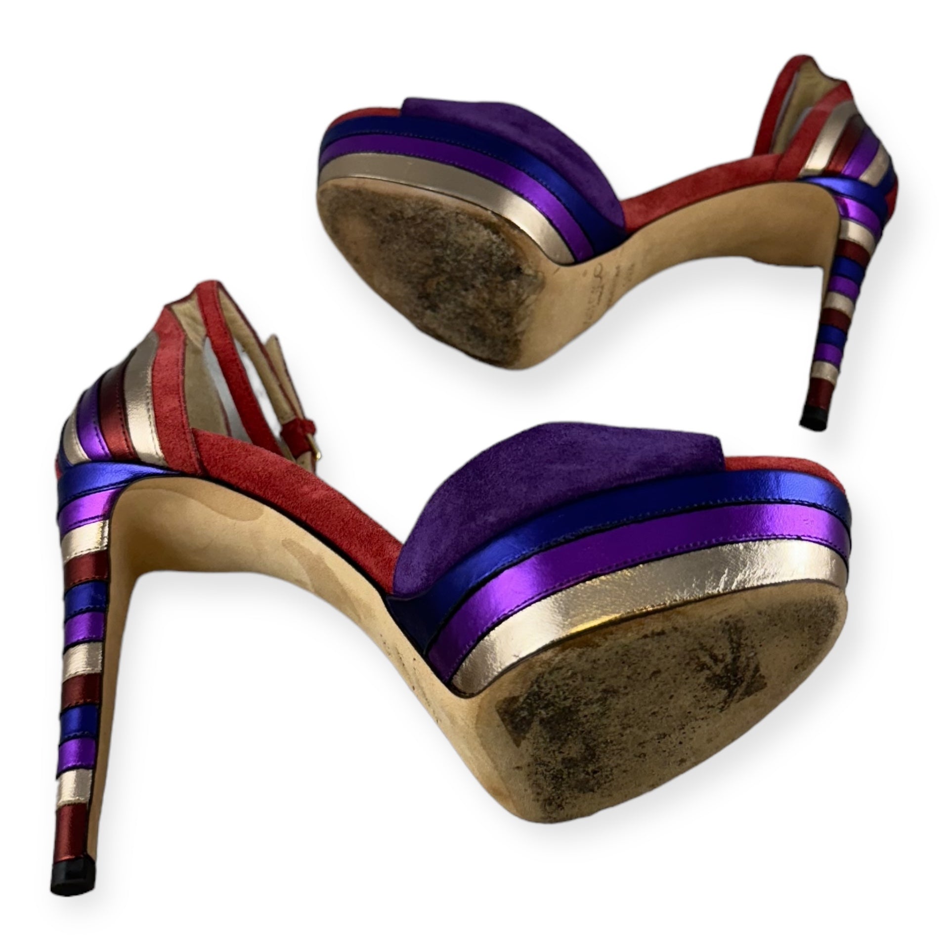 JIMMY CHOO METALLIC Stripe Sandals in Purple Multi | Size 36.5