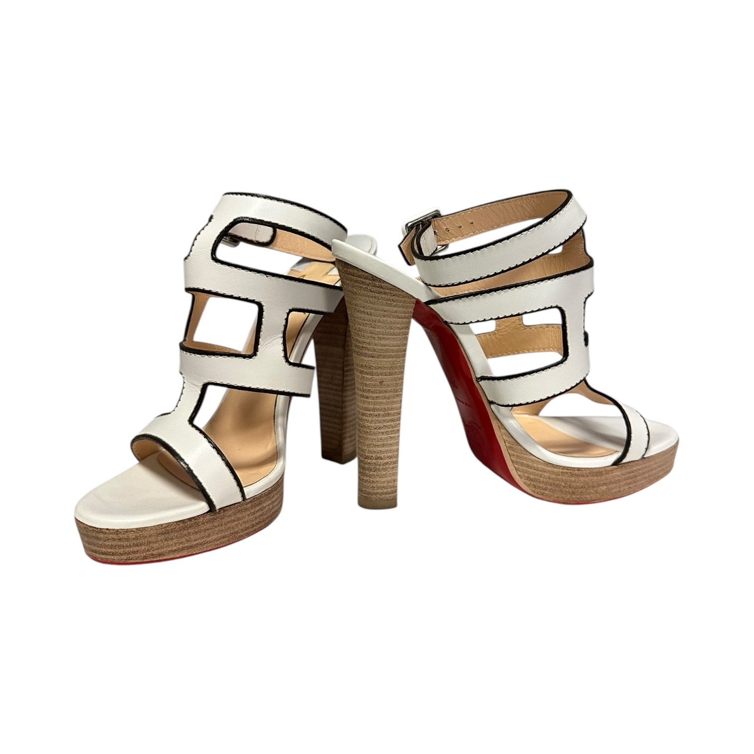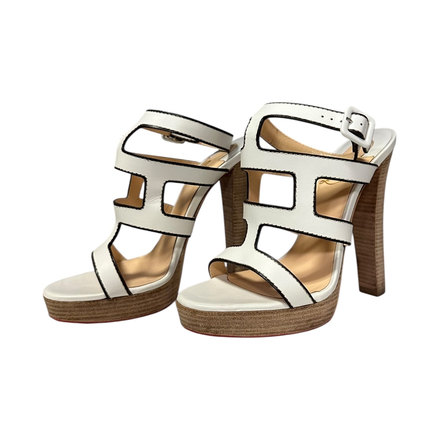 LOUBOUTIN Strappy Cage Sandal in White and Black | 36