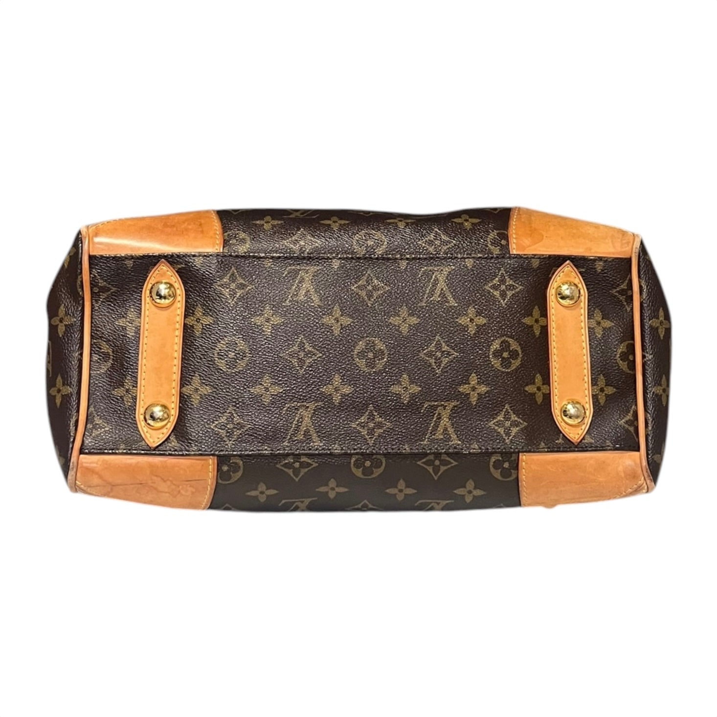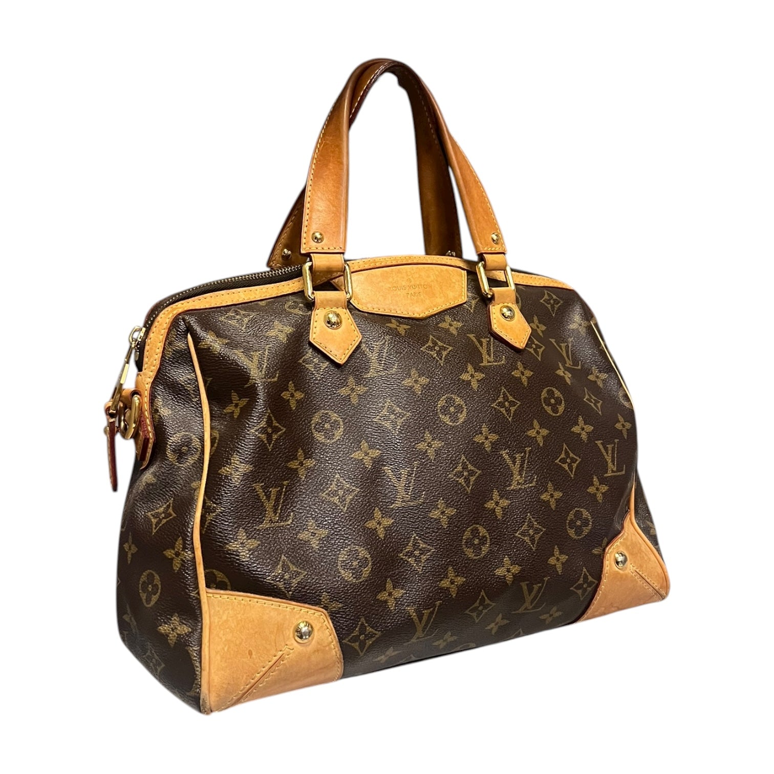 This authentic LOUIS VUITTON Monogram Retiro hand bag features the classic coated canvas, leather trim and handles, gold hardware, and zipper closure.