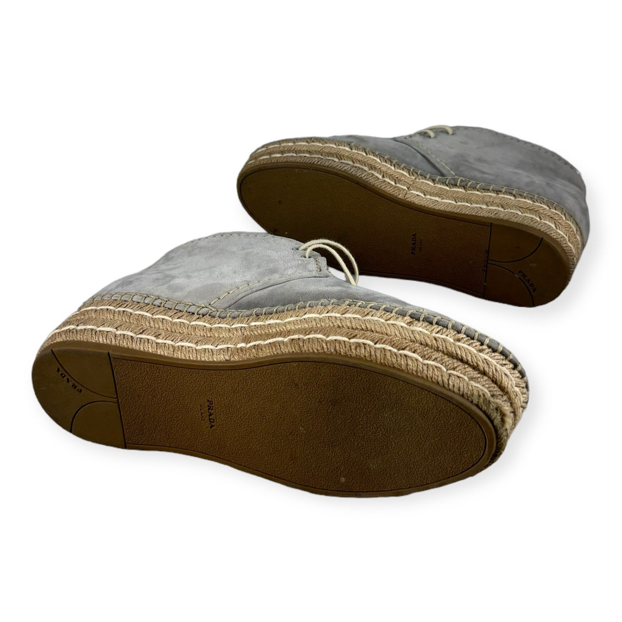 PRADA Suede Espadrille Lace Ups in Grey | Size 39.5