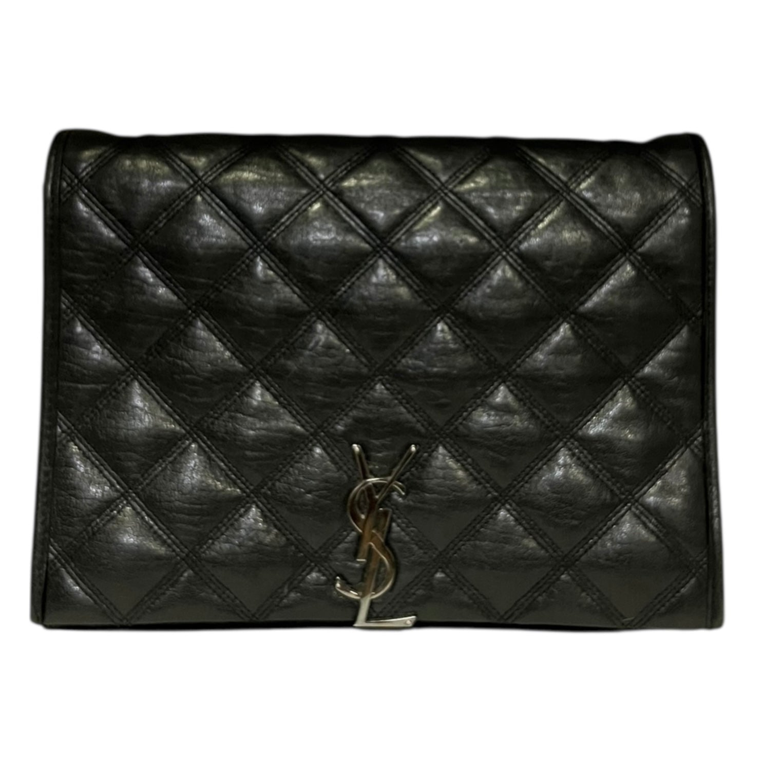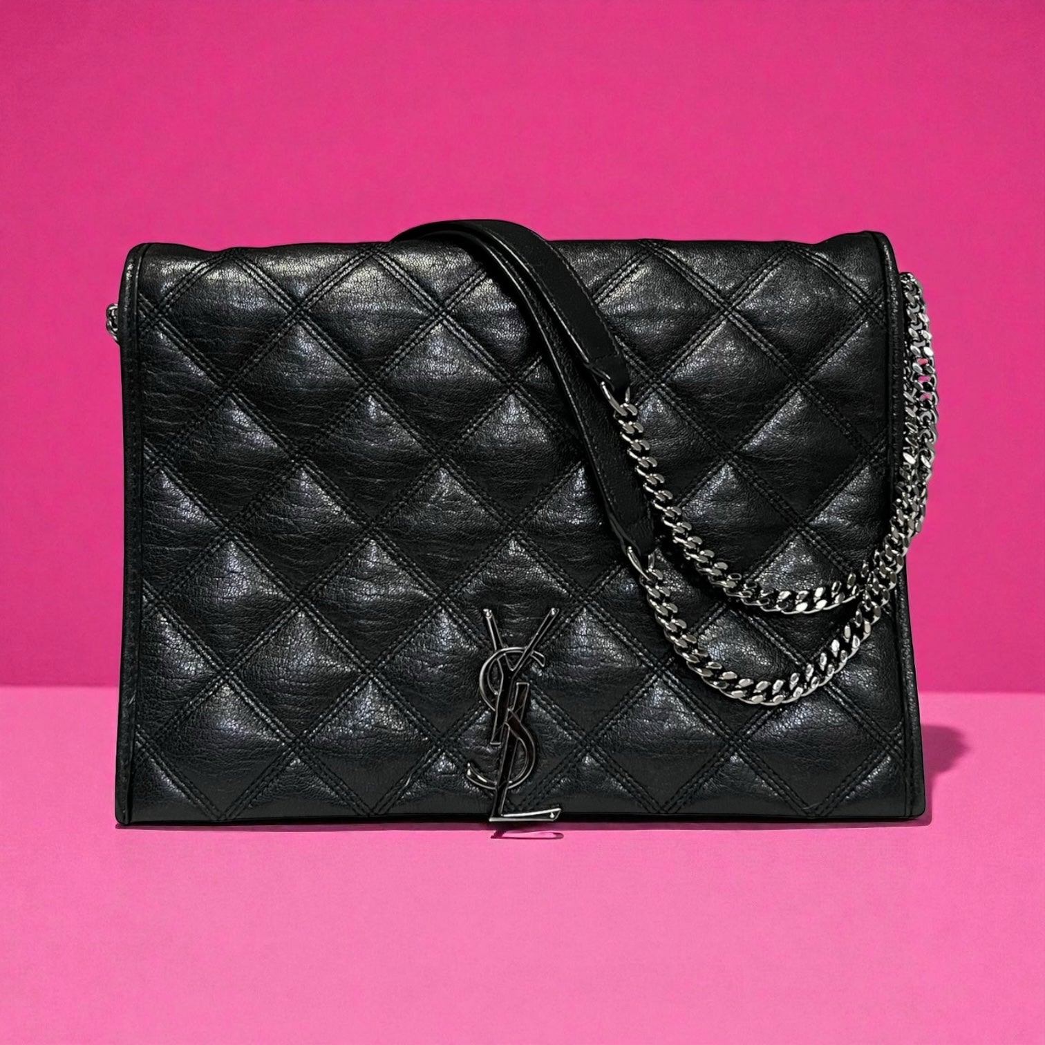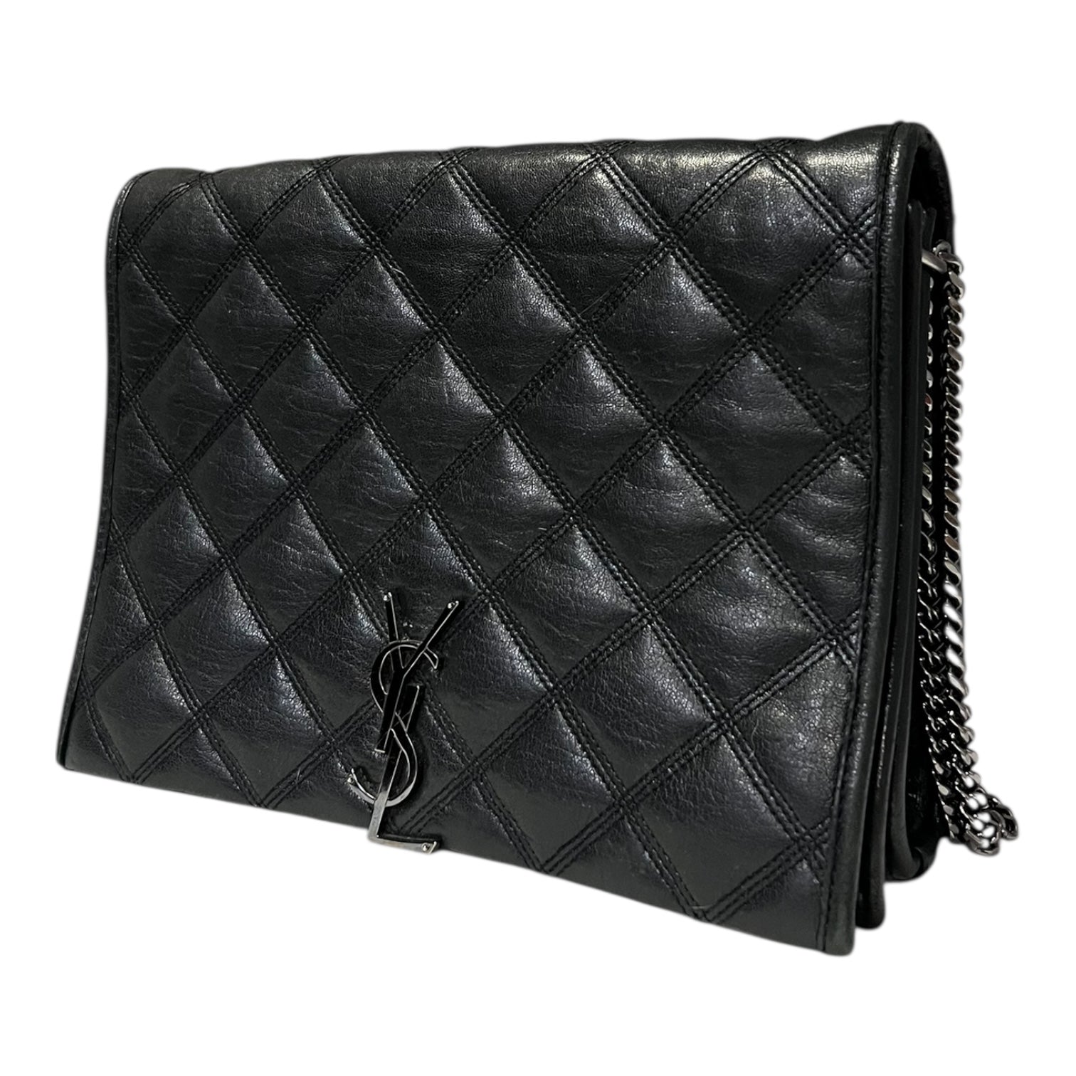 SAINT LAURENT Becky Quilted Lambskin Convertible Shoulder Bag in Black