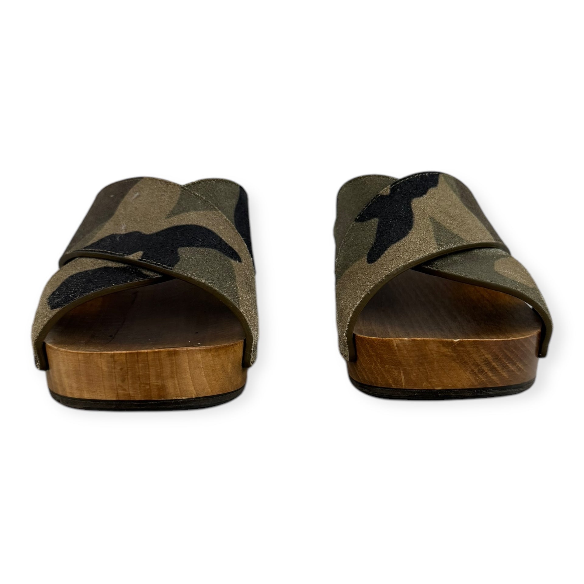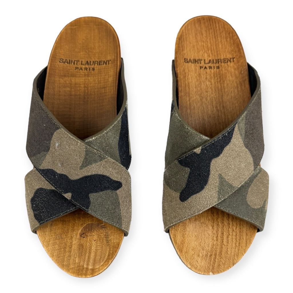SAINT LAURENT Camo Slide Sandals in Green | Size 38