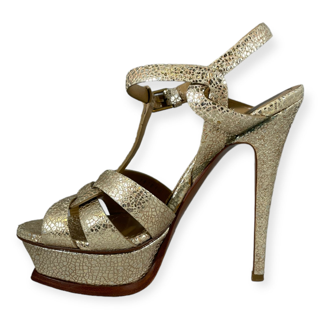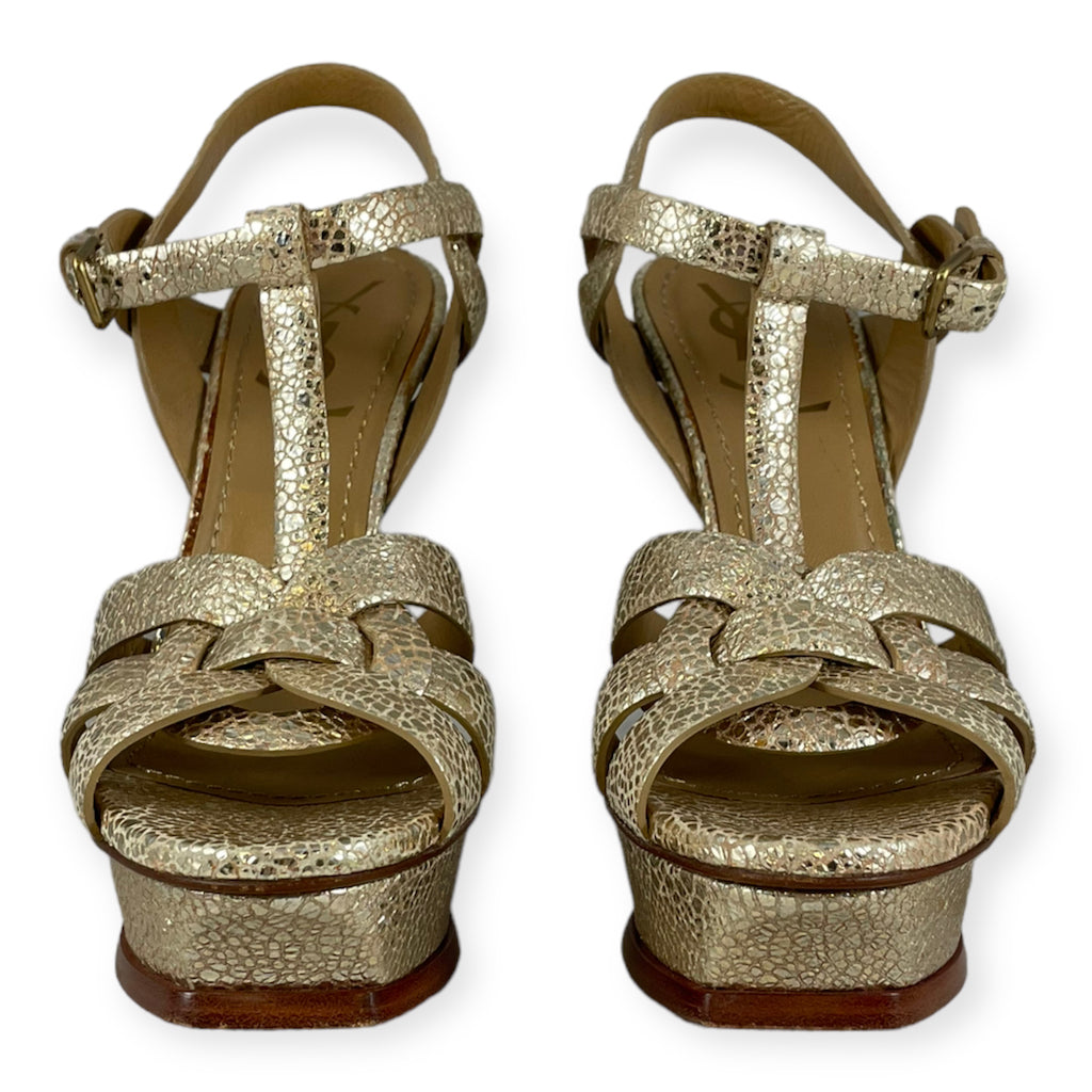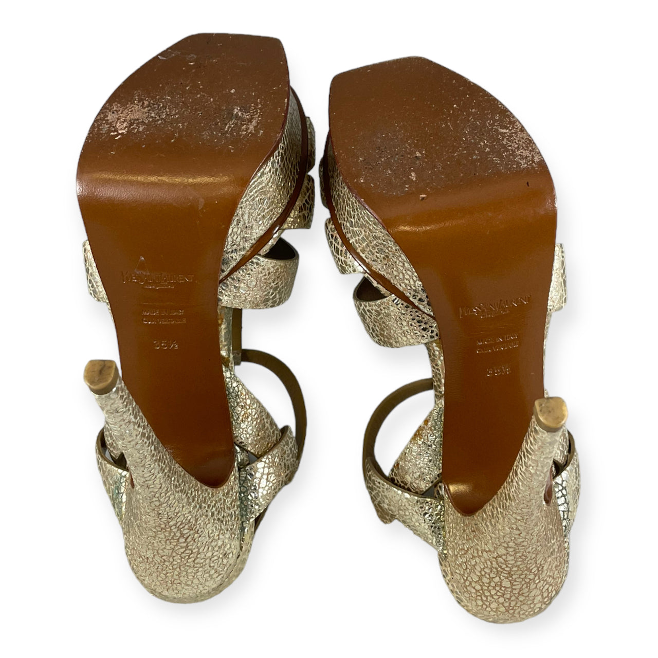 SAINT LAURENT Tribute Sandals in Gold | Size 35.5