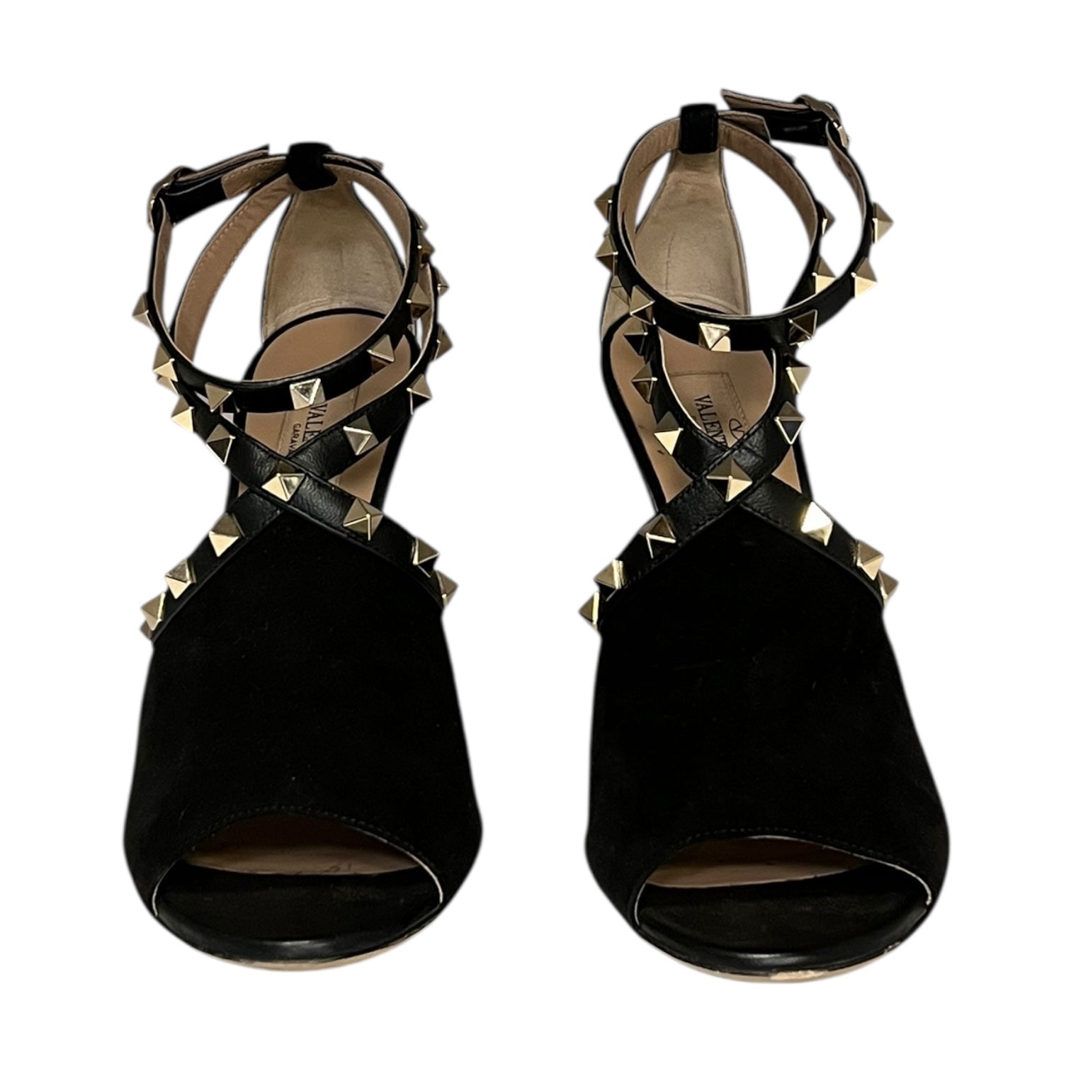 VALENTINO Rockstud Suede Glove Sandal in Black | 37.5